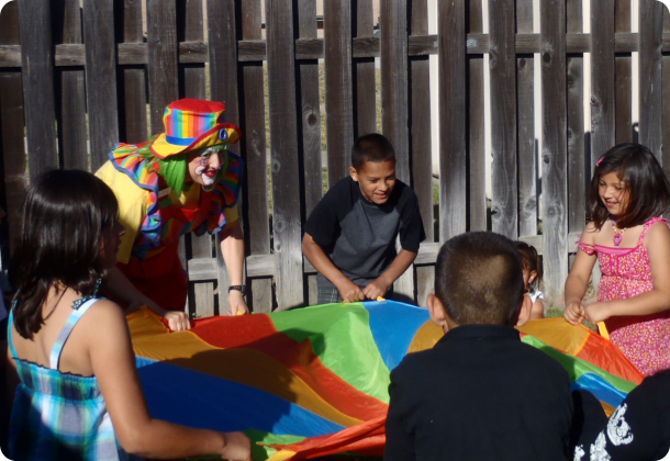 We're so glad you found us, because we want to help make your party the best and most fun ever! We've been in business for over 12 years, and have done events for everyone from the mayor and local hospitals and charities, to 100s of birthday children with parents just like you! We also do corporate events, such as company picnics and holiday parties, and we love to do shows at libraries, schools, daycare centers, and anywhere else we're needed! Let's just say we love to have fun, and we know what we're doing!